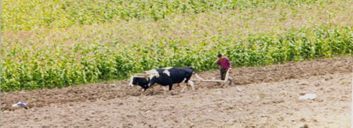Un hombre campesino con sus bueyes, cerca de Ingapirca