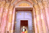 Una mujer indigena en la puerta de la (nueva) Catedral
